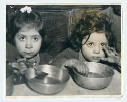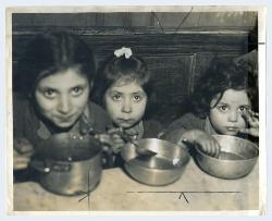 Bambine napoletane ritratte mentre mangiano in mensa