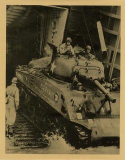 Arrivo di un carro armato francese su una spiaggia