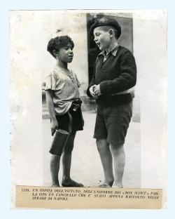 Un boyscout parla con un orfano dell'istituto figli del popolo a Napoli