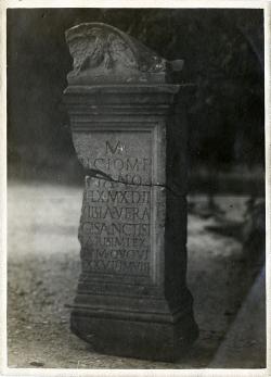 Trieste, Orto Lapidario : monumento a Fabio Severo con il verbale municipale