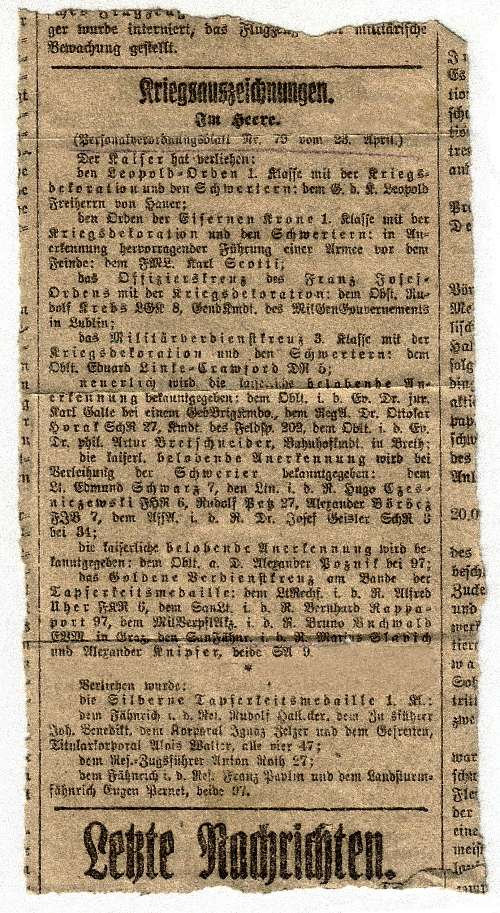 Kriegsauzeichnungen : Personalverordngsblatt n. 79 vom 23 April 1916