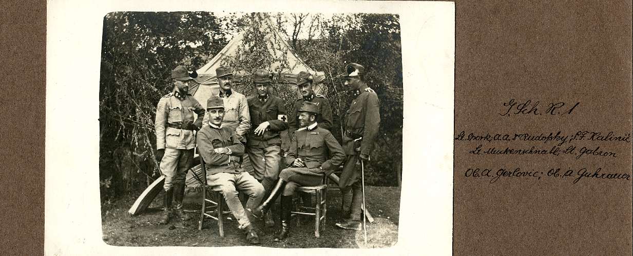 I. Sch. R. 1 : Lt. Spork, A. A. Dr. Rudofsky, S. F. Kalinic, Lt. Muckenschnabl, Lt. Gabron, Ob. A. Gerolovic, Ob. A. Guhrauer