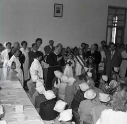 Visita del vescovo Santin alla colonia CRI di Villa Santina
