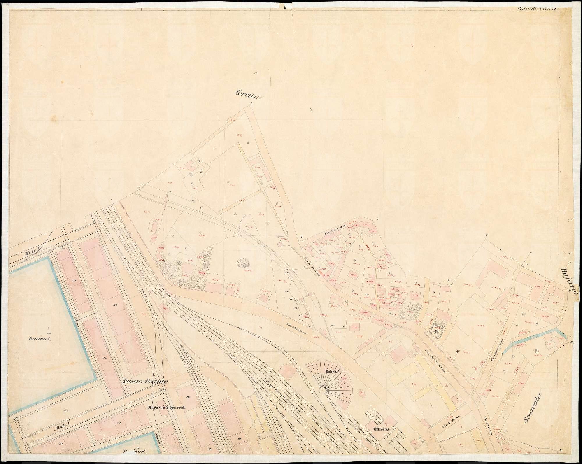 Città di Trieste nel Litorale Territorio di Trieste : distretto steorale di Trieste : litografato nell'i.r. Istituto litografico del Catasto secondo lo stato dell'anno 1894