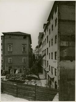 Trieste, demolizione delle case alla base del muraglione davanti all'ex collegio dei Gesuiti