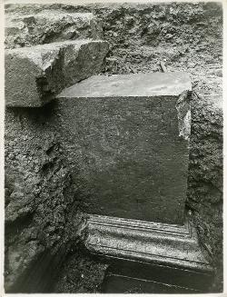 Trieste, scavi teatro romano : rinvenimento della lapide frammentaria di Quinto Petronio Modesto
