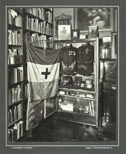 Appartamento di Filippo Zamboni a Vienna : studio con bandiera e divisa del Battaglione universitario