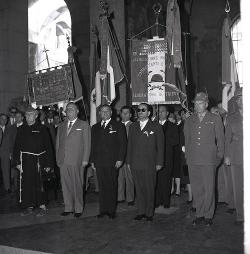 Consegna medagliere all'ANCR e bandiere alle sezioni. Scoprimento targa caduti novembre 1953