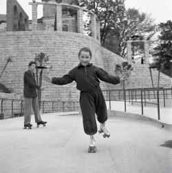 Bambina al giardino : campo giochi (con pattini)