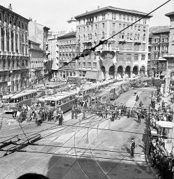 Numerosi mezzi Acegat sostano in p. Goldoni per il passaggio del presidente Segni