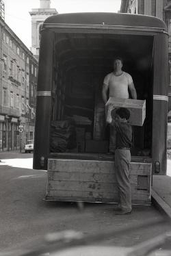 Portone Messaggero Veneto (U.T.) ; scarico casse piazza San Giovanni , supposto mater.[iale] RAS