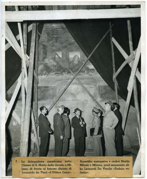 La delegazione americana nella Chiesa di S. Maria delle Grazie a Mi-lano, di fronte al famoso dipinto di Leonardo da Vinci «L'Ultima Cena».