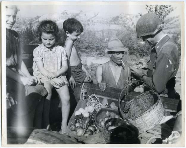 Italia, 18-3-1944, Un contadino italiano parla con gli angloamericani che hanno lasciato il suo villaggio