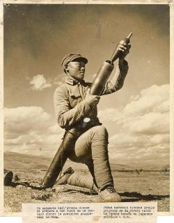 A chinese army sergeant prepares to fire a mortar
