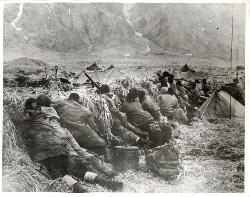 Chinese officers relax in former Japanese defence position