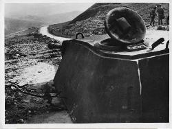 Liason officers of the Y-Force staff and Chinese Army officers check the progress of Allied artillery fire from an observation post overlooking Tengchung in southwestern China (...)