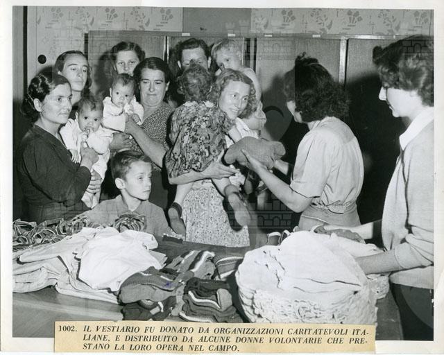 1002. IL VESTIARIO FU DONATO DA ORGANIZZAZIONI CARITATEVOLI ITALIANE, E DISTRIBUITO DA ALCUNE DONNE VOLONTARIE CHE PRESTANO LA LORO OPERA NEL CAMPO.