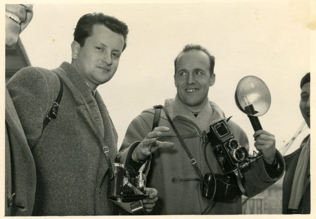 Ugo Borsatti in strada con la sua Rolleiflex