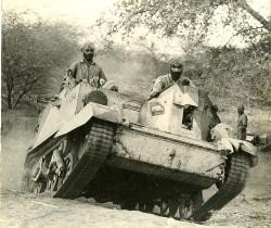 Soldati indiani con turbante su carro armato