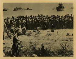 More German prisoners march to an embarkation point for transfer to prison camps