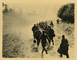 U.S. troops advance through a town west of Paris