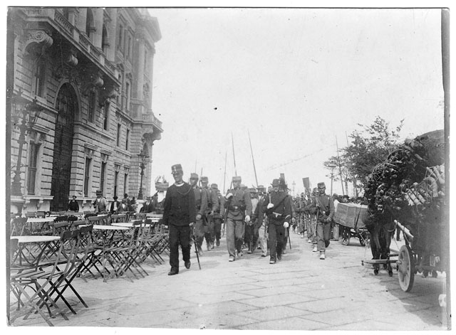 Gruppo di persone arrestate per aver danneggiato la scuola della Lega nazionale : Piazza grande settembre 1898