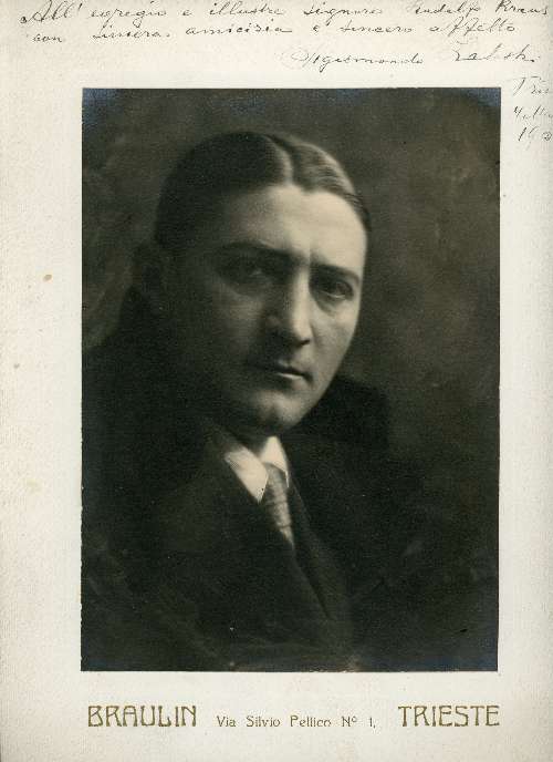 Teodoro Costantini sul poggiolo della Casa Rosario Currò in via Felice Venezian