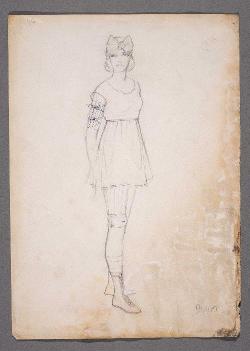 I Giacobini, dramma di Federico Zardi. Figura femminile di profilo in abiti della Rivoluzione francese