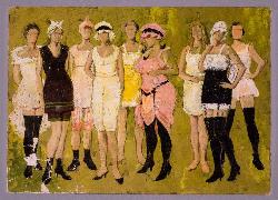 L'opera da tre soldi di Bertolt Brecht e Kurt Weill, regia di Giorgio Strehler. Gruppo di nove figure femminili in biancheria intima