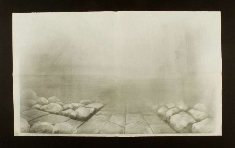 Otello, opera di Giuseppe Verdi, atto I. Particolare di molo prospicente sul mare, dettaglio di rocce