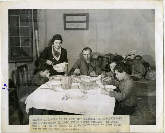 SEDUTI A TAVOLA IN UN AMBIENTE ABBASTANZA CONFORTEVOLE ESSI CONSUMANO IL LORO PRIMO PASTO NORMALE IN MOLTI MESI. PER MOLTO TEMPO LE LORO CONDIZIONI DI VITA SONO STATE FRA LE PIU' DIFFICILI