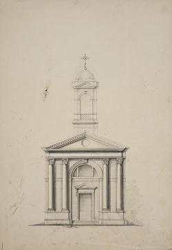 Progetto di chiesa in stile neoclassico con campaniletto posteriore