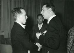 Pavle Merkù con Samo Hubad e la moglie Dana Hubad in occasione della esecuzione di Von der kindesmörderin Marie Farrar