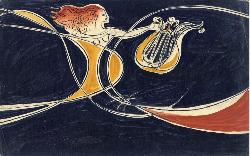 Bozzetto con figura femminile stilizzata e danzante con lira in mano