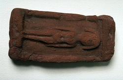Statuetta in terracotta di donna distesa su un letto, del tipo della "concubina del defunto", dall'Egitto