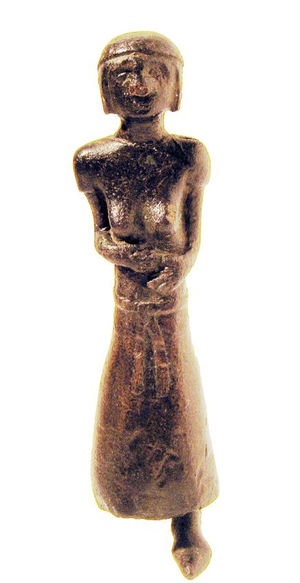 Bronzetto raffigurante donna stante a braccia alzate, Falso