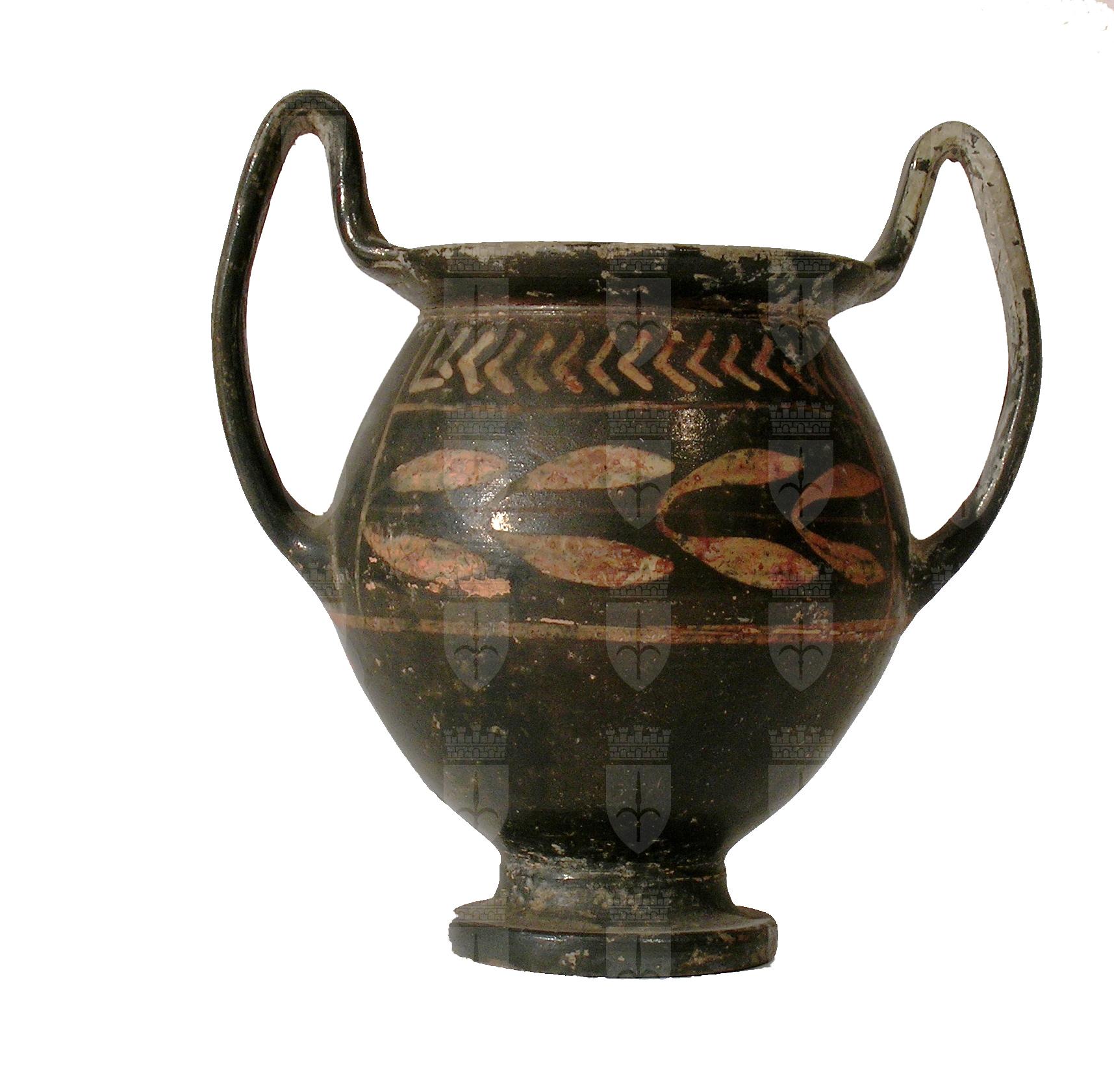 Skyphos attico a figure rosse. Decorato con grande serto d'ulivo