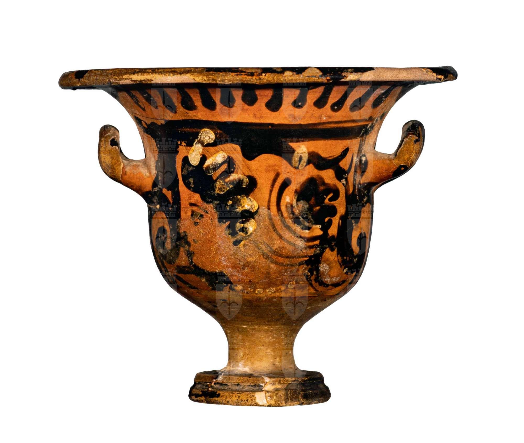 Cratere a campana apulo a figure rosse con ramo d'olivo