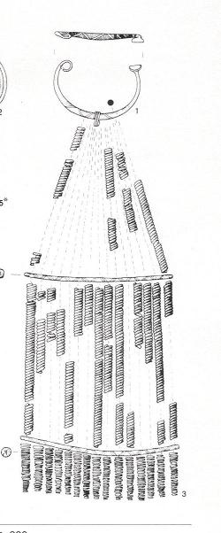 pettorale composto in bronzo, perle vitree e ambra