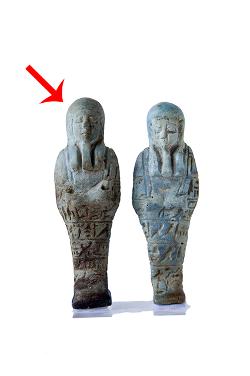 Parte superiore di ushabti femminile in faience, dall'Egitto, incollato a inv. 30939