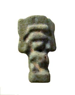 Amuleto in faience raffigurante Bes privo del coronamento, dall'Egitto