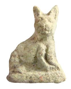 Amuleto a forma di gatto con foro passante sul collo, dall'Egitto