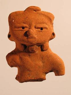 Figurina maschile seduta in ceramica da El Salvador