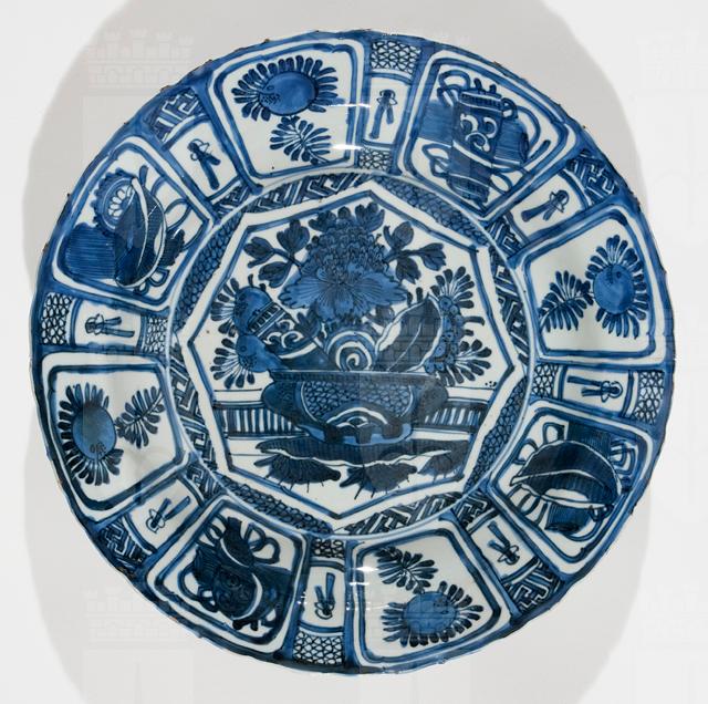 Piatto "bianco e blu" da esportazione, di tipo Kraak