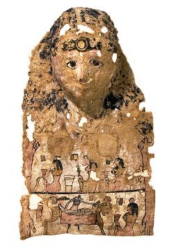 Pettorale con maschera, in cartonnage, dall'Egitto