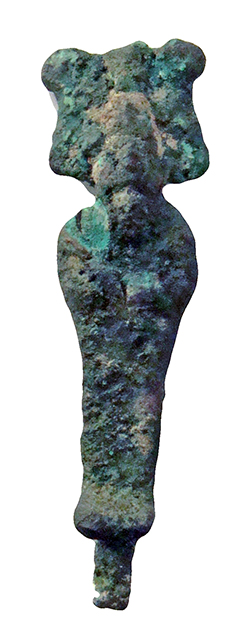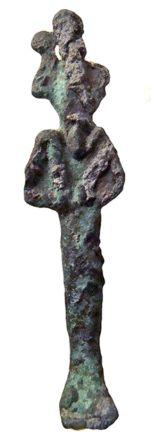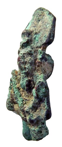 Amuleto in bronzo raffigurante Osiride con perno sotto i piedi, dall'Egitto