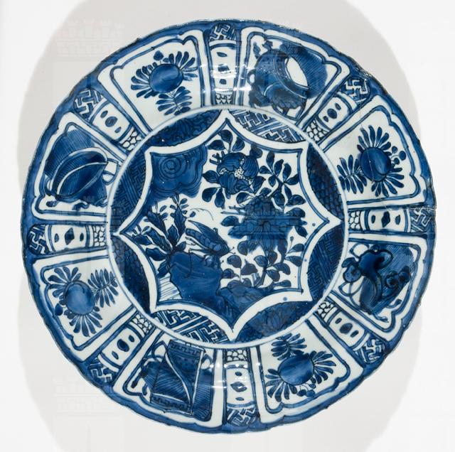 Piatto "bianco e blu" da esportazione, di tipo Kraak