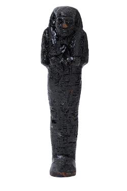 Ushabti in legno coperto da sostanza bituminosa, dall'Egitto