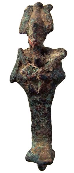 Amuleto in bronzo raffigurante Osiride con perno sotto i piedi, dall'Egitto