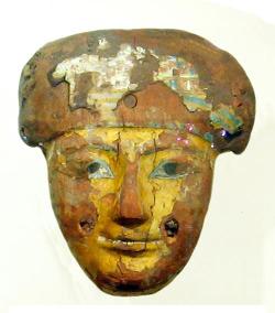 Maschera pertinente a un sarcofago in legno dipinto, dall'Egitto